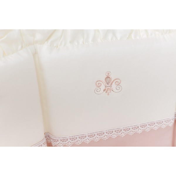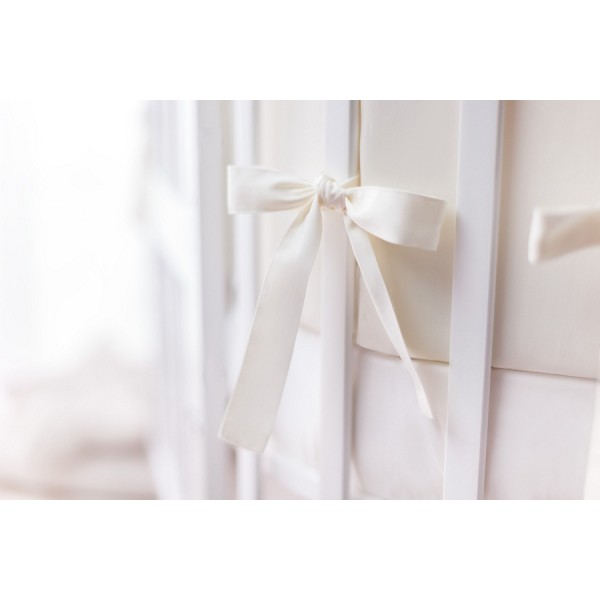 Нежная и элегантная, модель «Эстель» погружает в атмосферу эпохи Ренессанса. Пастельные тона, воздушное кружево, изящная вышивка и атласные ленты – каждая деталь создает настроение легкости. Комплект продуман до мелочей: специальная форма подушки и одеяло с закругленными углами создают цельную композицию. Составной бампер допускает различные варианты сочетания и подойдет как для круглой, так и для овальной кровати, а функциональность дополнительного кармана уже оценили многие родители.