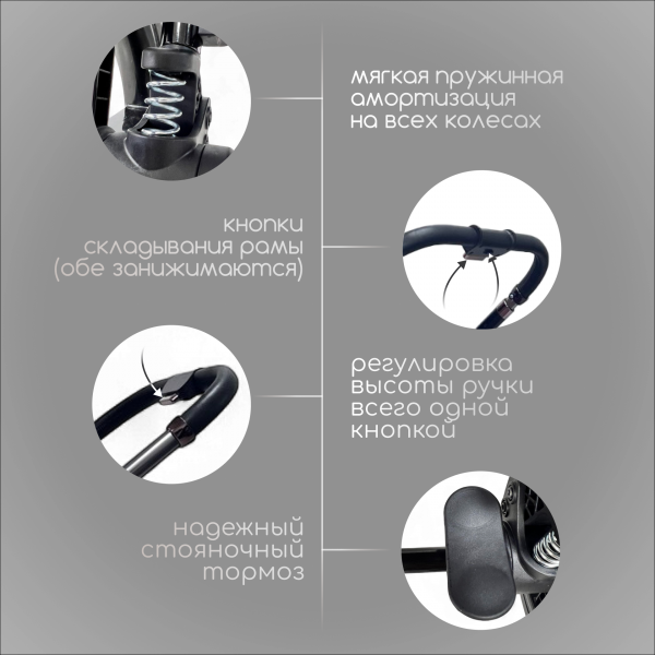 Пружинная амортизация обеспечивает плавный ход и снижает нагрузку при езде по неровной поверхности.