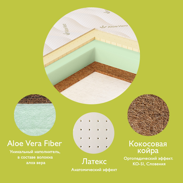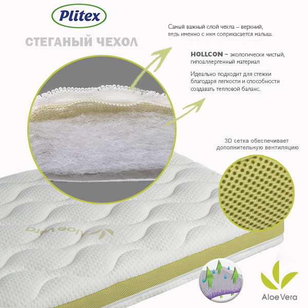 Детский матрас "Aloe vera Simple" –является матрасом нового поколения который содержит волокно Aloe vera. Материал Aloe vera обладает полезными свойствами такими как: укрепляет иммунитет, облегчает дыхание малыша и оказывает противомикробное действие.